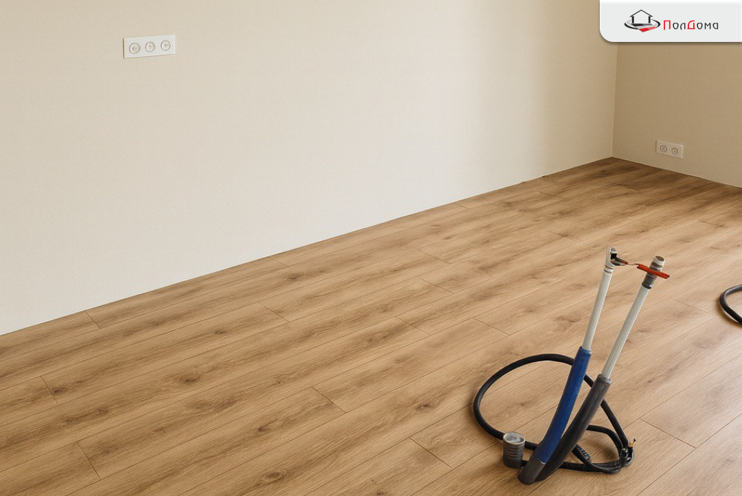 В частном коттедже выполнили монтаж напольного покрытия на площади 110 м². Задача — получить прочный, влагостойкий и визуально цельный пол под натуральное дерево. Результат — ровное, эстетичное и долговечное покрытие, готовое к интенсивной эксплуатации во всех зонах дома.